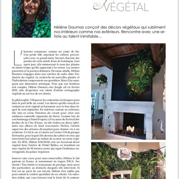 Jungle Art, Décoratrice d’intérieur et paysagiste d’extérieur, créatrice d’espace et de jardin, Jungle Art est née de l’amour du beau en 2010 à la CIOTAT par Hélène Daumas. Hélène puise son inspiration de la magie du vivant et transmet son émotion et son élégance en la mettant en scène.