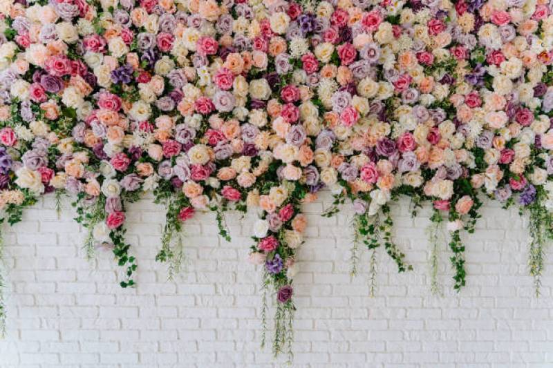 Exemples courants : installation suspendue de roses ou pivoines, couloir végétal d’entrée, espace photo thématisé avec fleurs séchées.