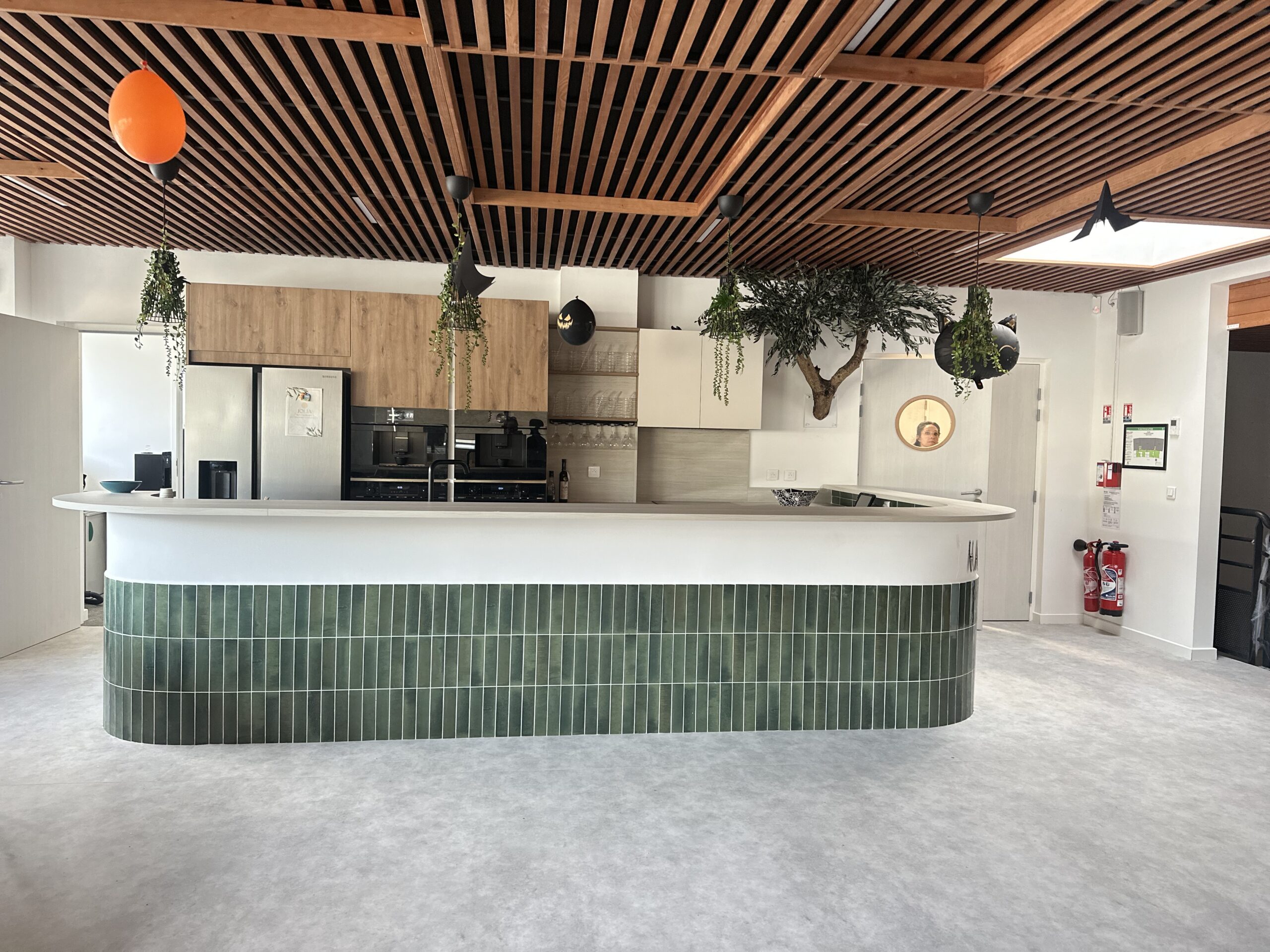 Scénographie végétale en jardin d’intérieur avec en décoration des arbres oranger à la société Marseillaise de crédit à Marseille