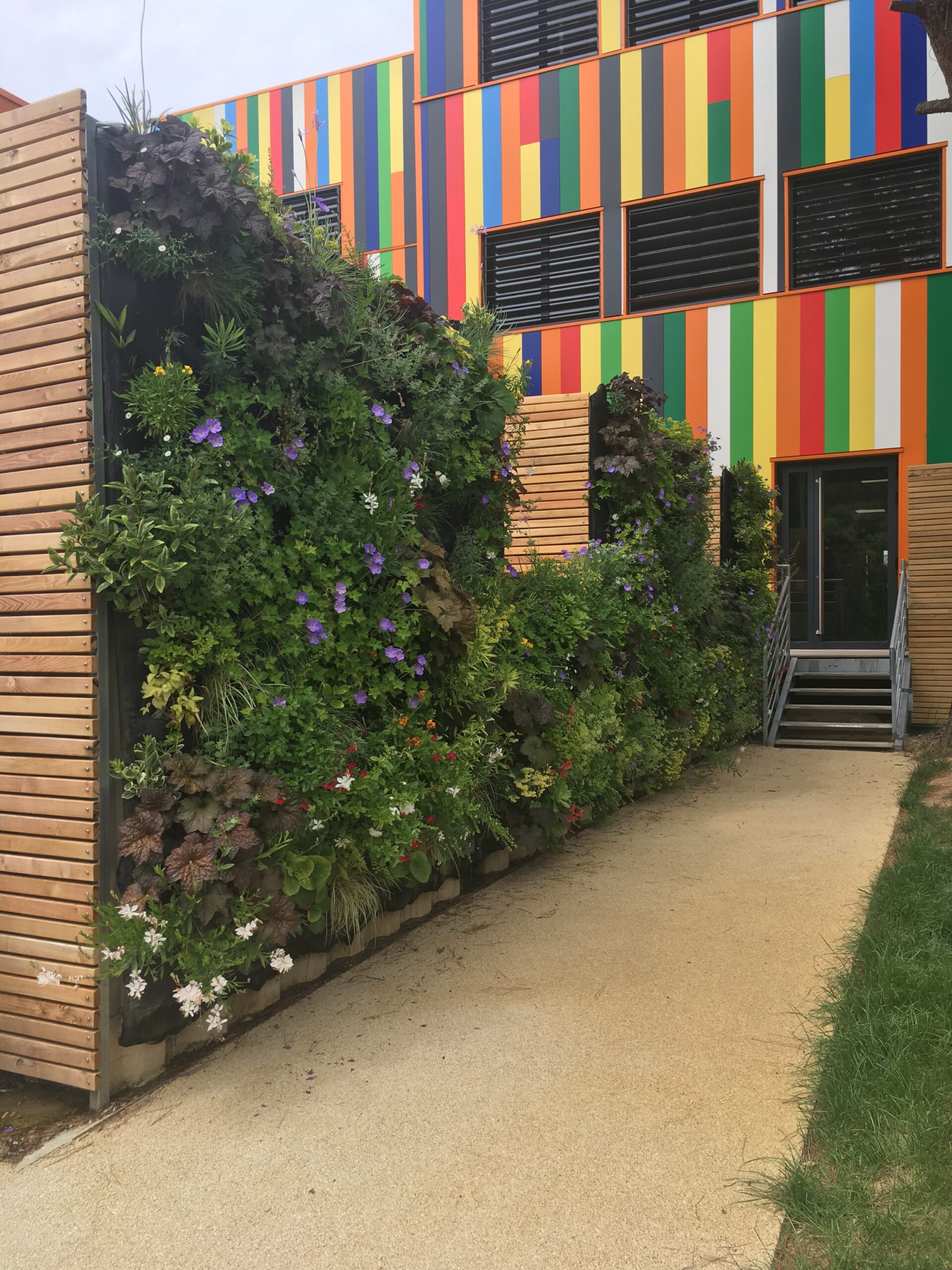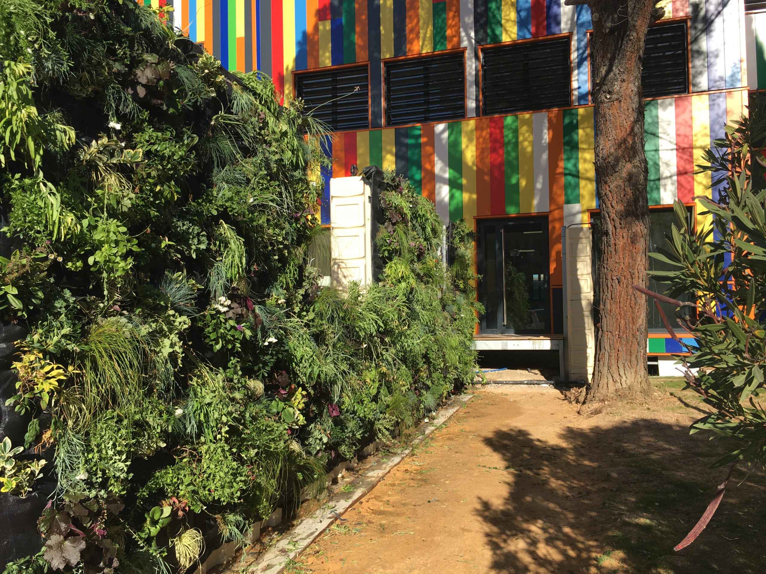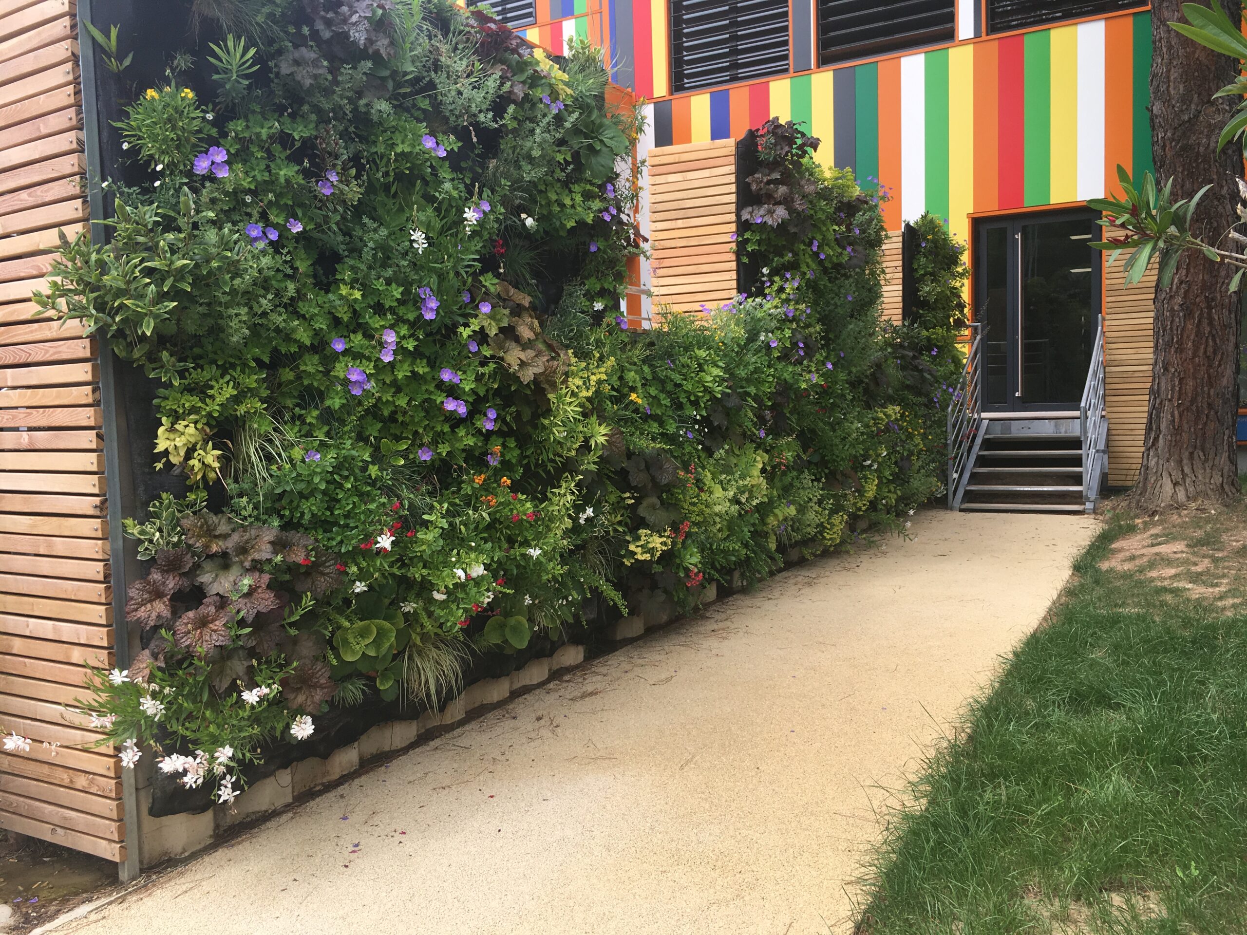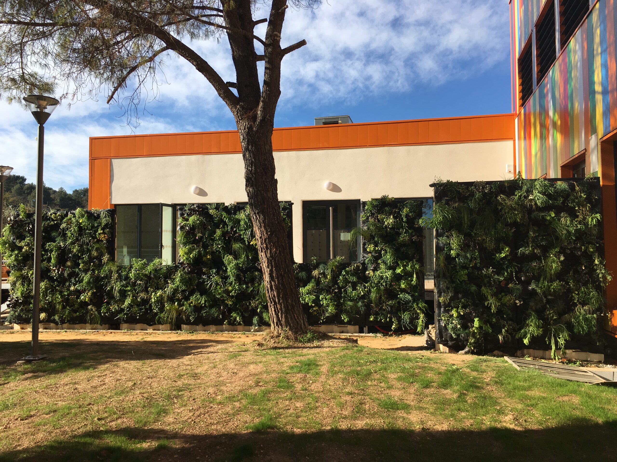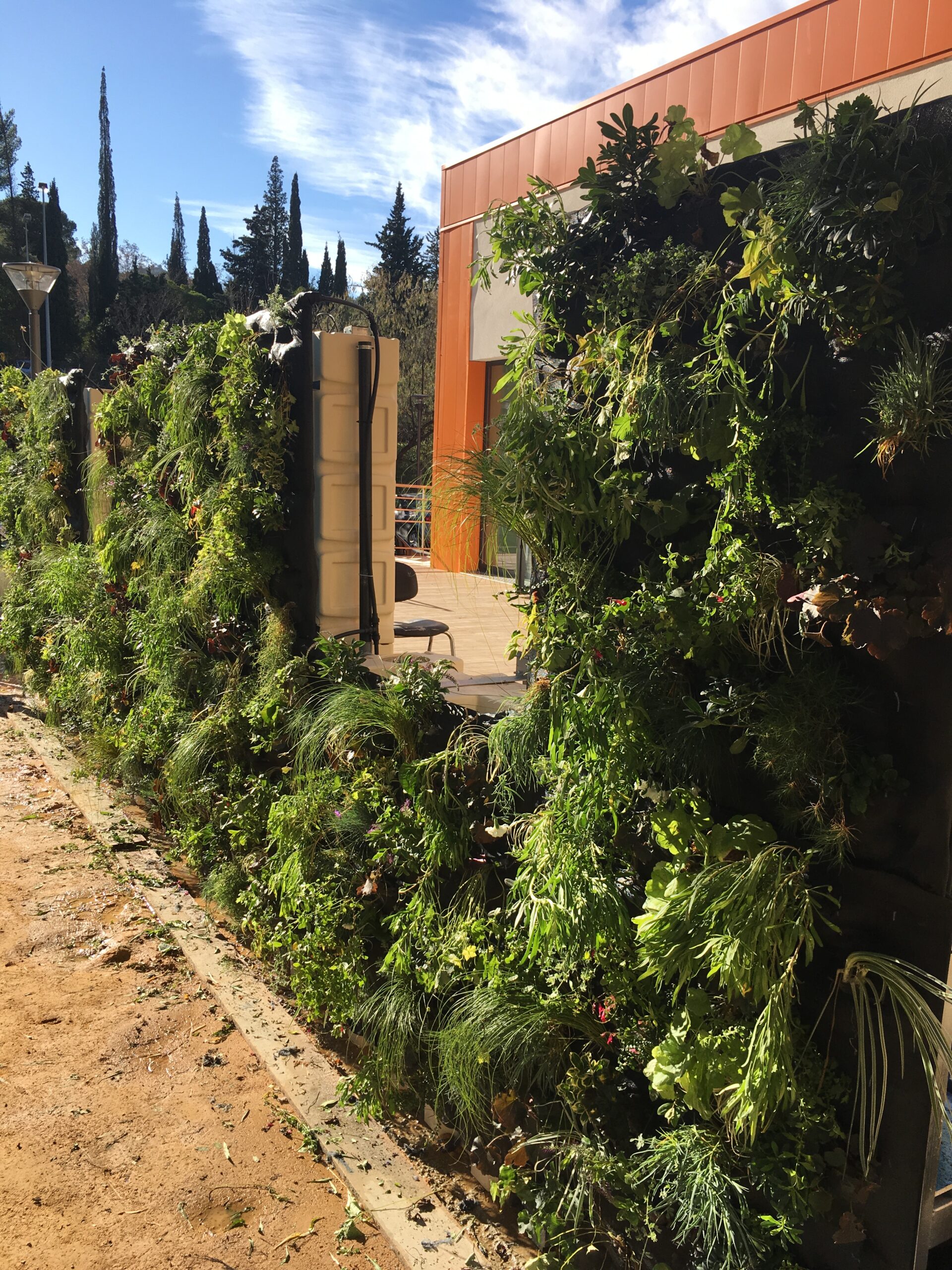 Jungle Art a crée un mur végétal pour une agglomération de commune de Marseille, sur un bâtiment administratif situé à Aubagne dans la zone industrielle. Ce mur végétal a été conçu sur une réserve d’eau appelé « mur d’eau ». Nous avons monté la structure métallique puis accroché nos panneaux avec le substrat breveté Jungle Art puis planté des végétaux vivaces colorées, pour un tableau offrant à chaque saison un spectacle différent . Le mur végétal s’arrose avec de l’eau de pluie puis si nécessaire avec l’eau de ville si les bacs de réserve d’eau sont vides .