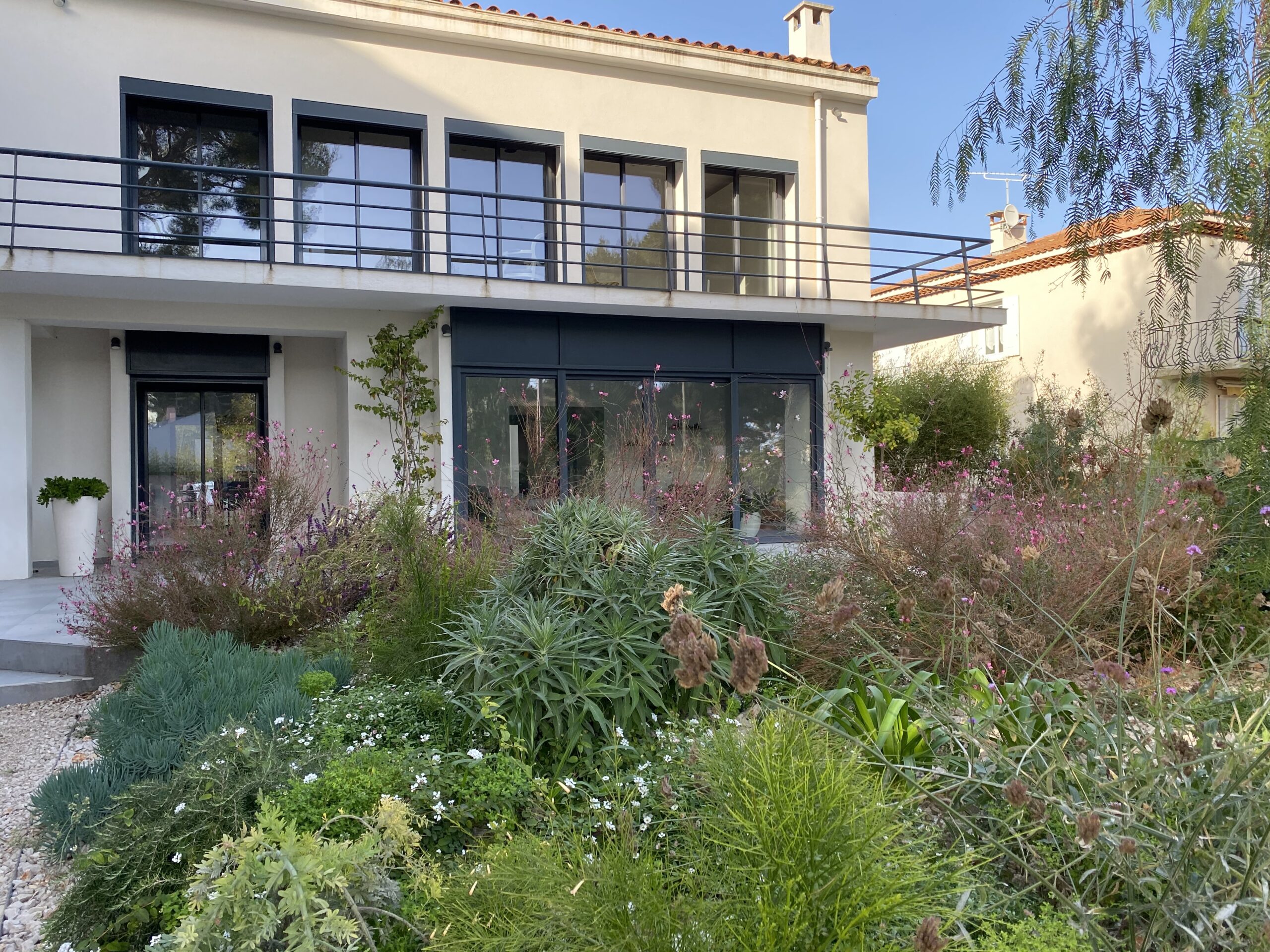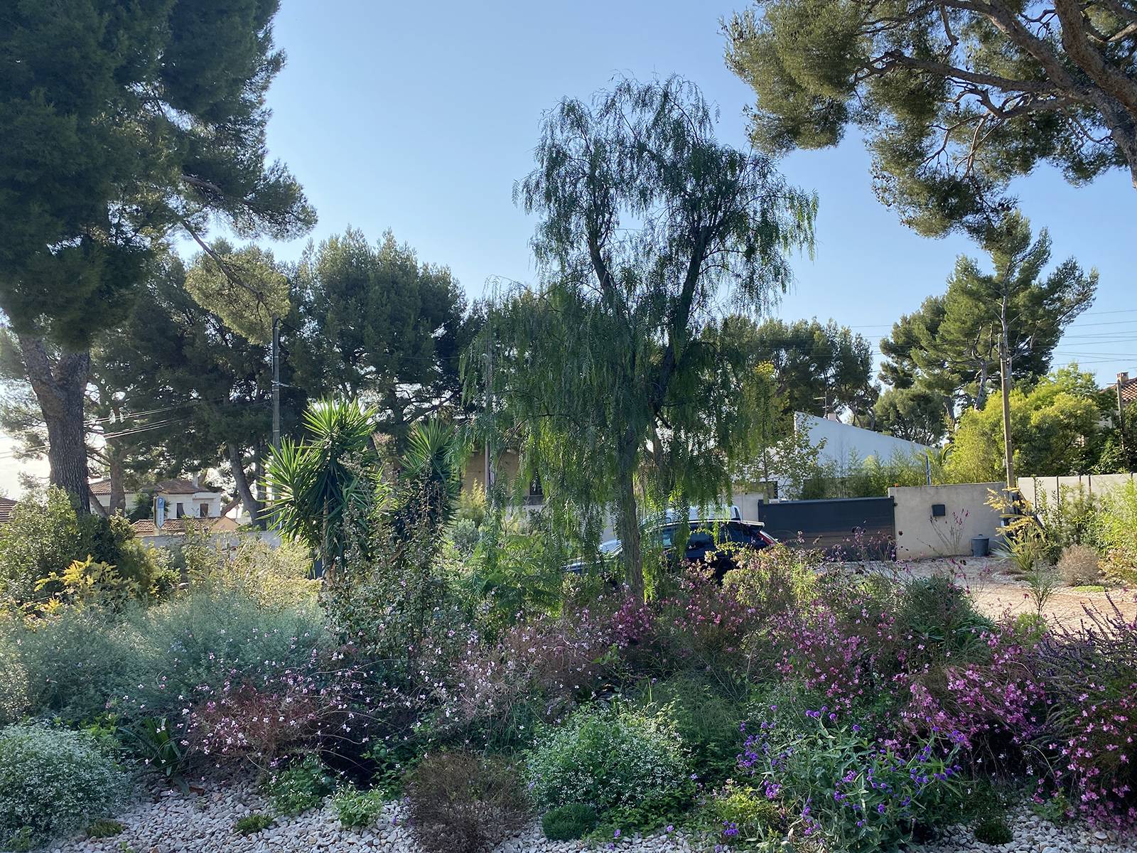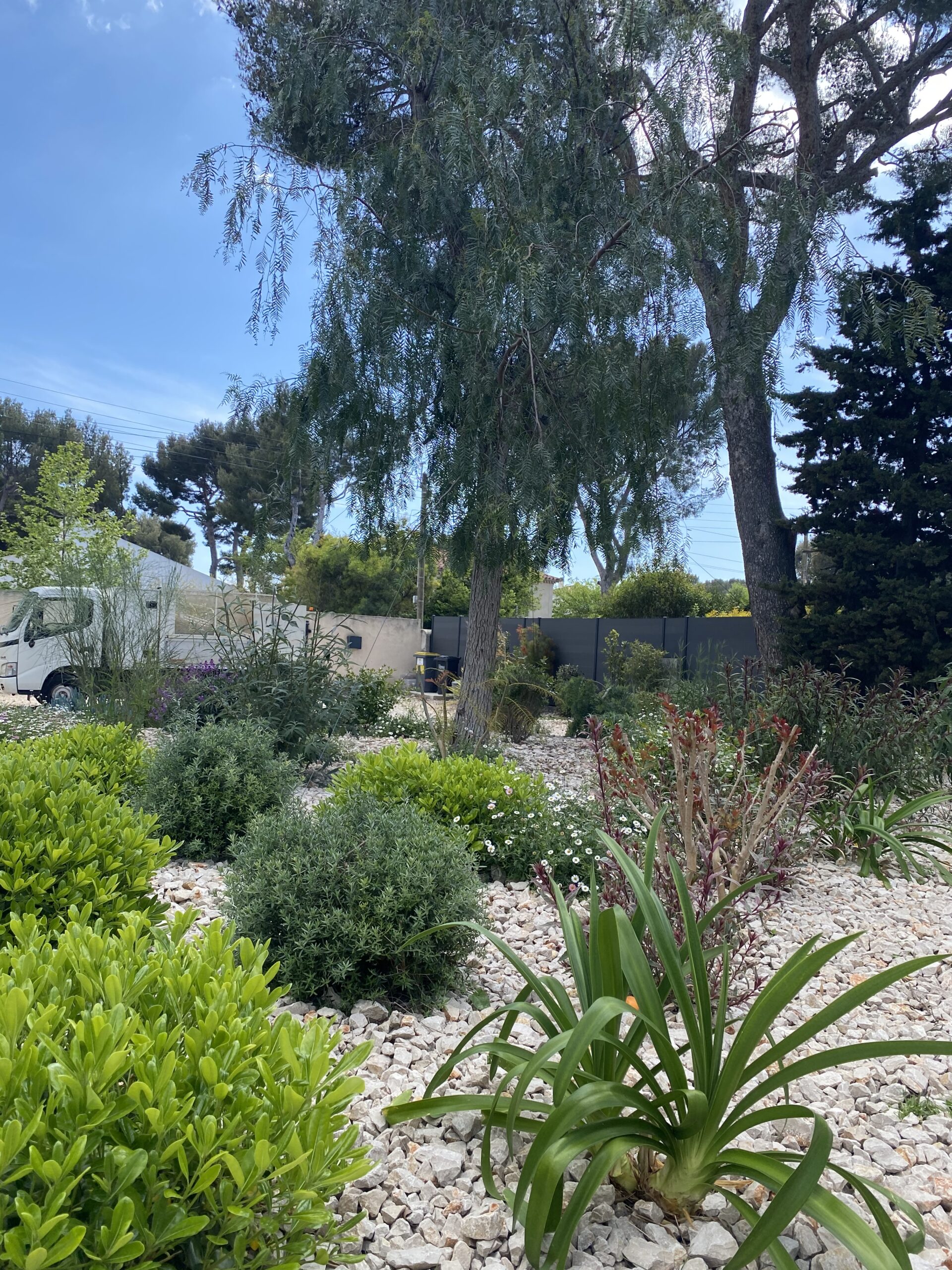 À La Ciotat, Le Jardin de Parme est né d’un terrain vierge et d’une vision : créer un espace où chaque saison dévoile une palette de nuances bleues. Conçu pour s’adapter aux envies de ses habitants, ce jardin allie le sauvage et le sophistiqué, reflétant l’approche unique de Jungle Art en matière de design paysager. l’enjeu était de taille cacher les voiture de la vue du salon et faire en sorte que l’espace appartienne aux enfants sans que le graphisme s’en ressente .