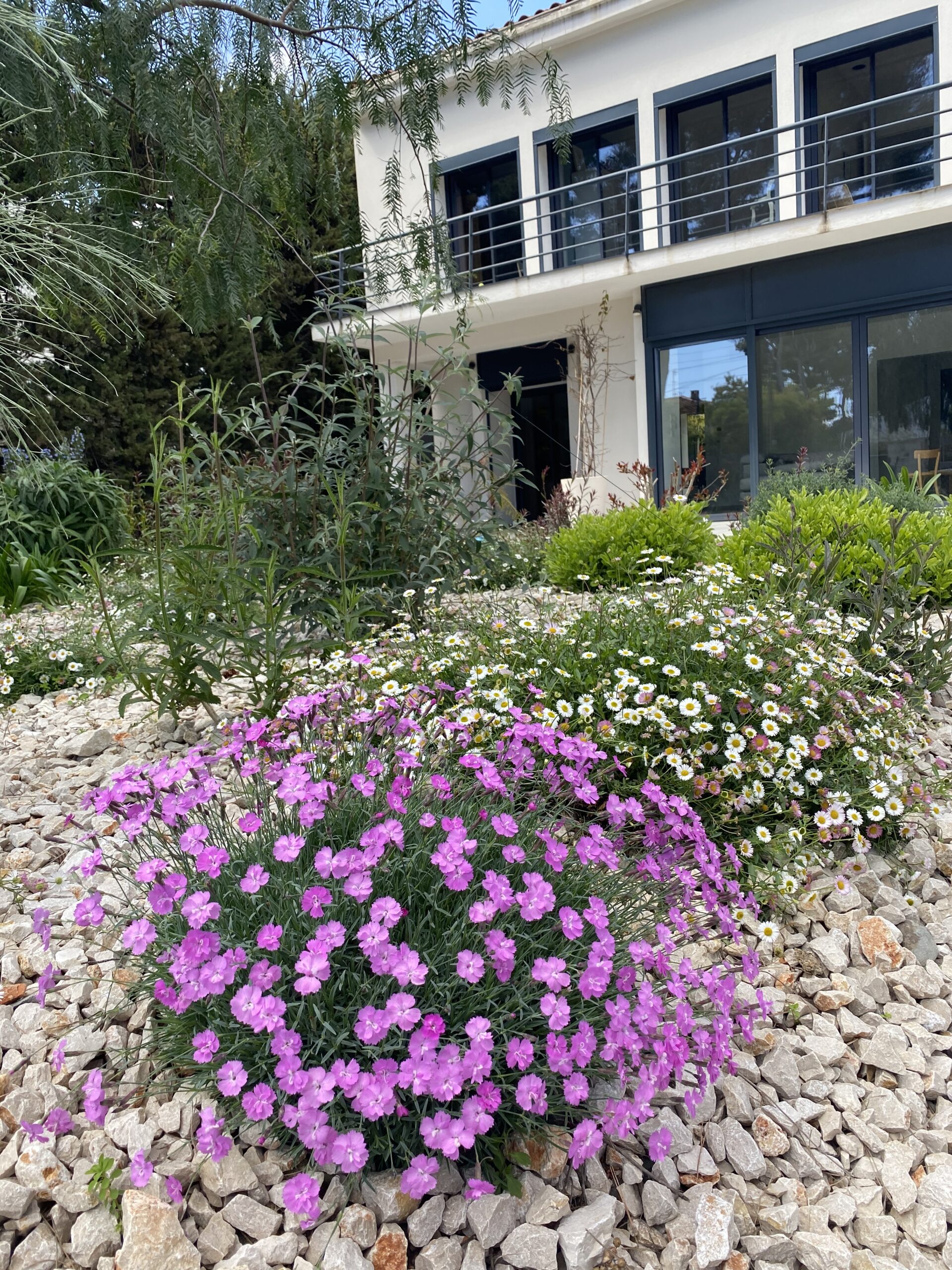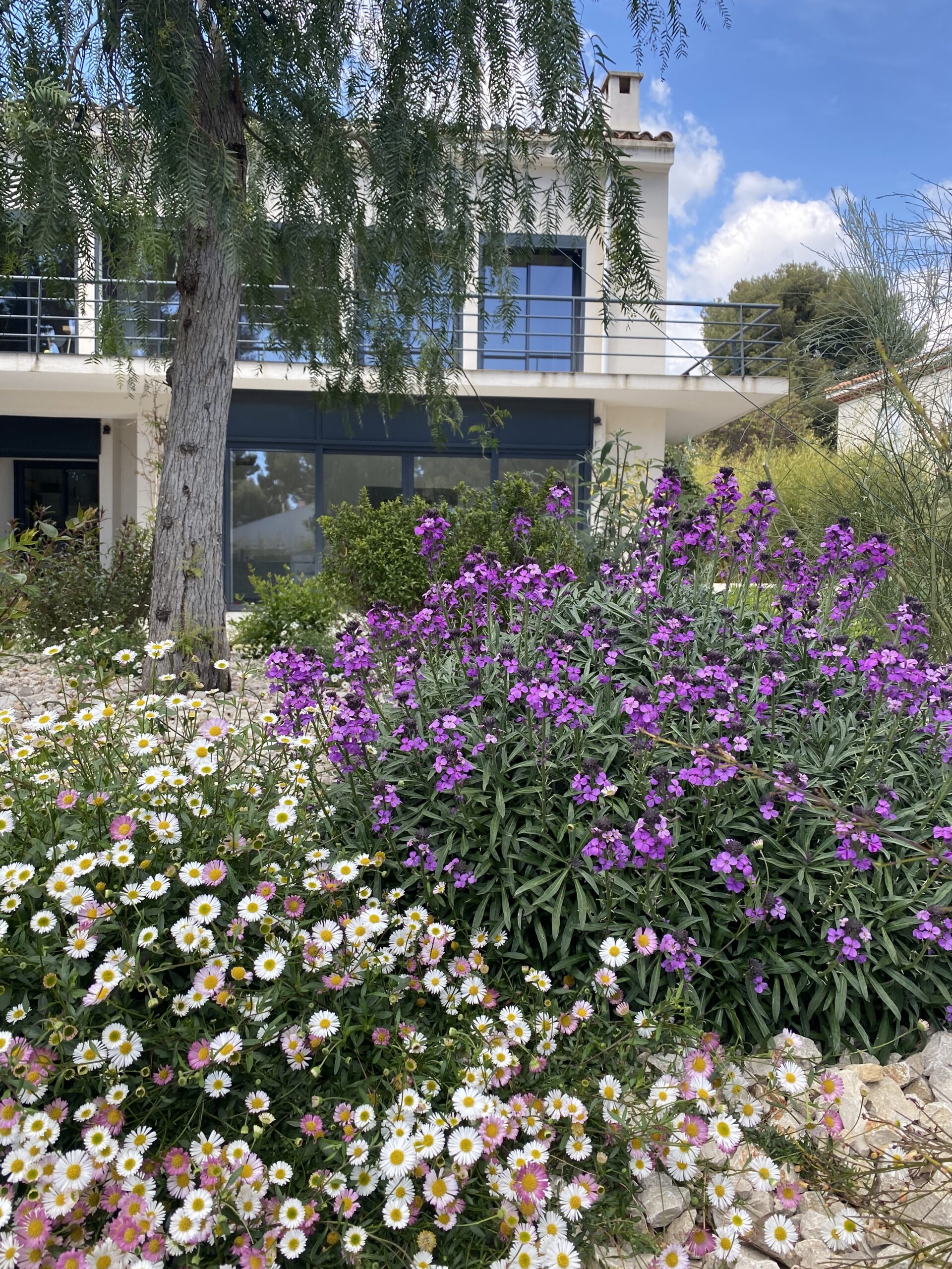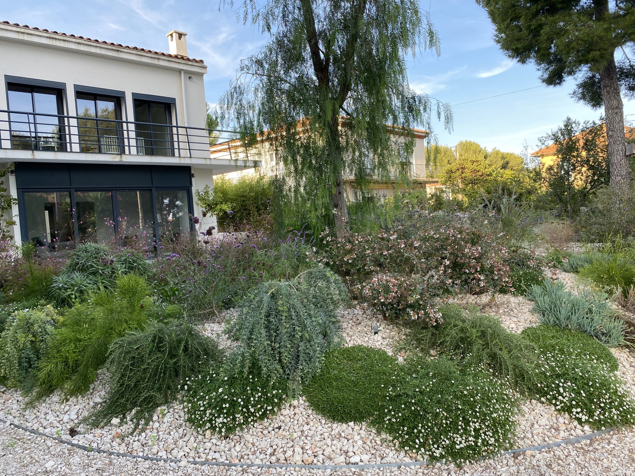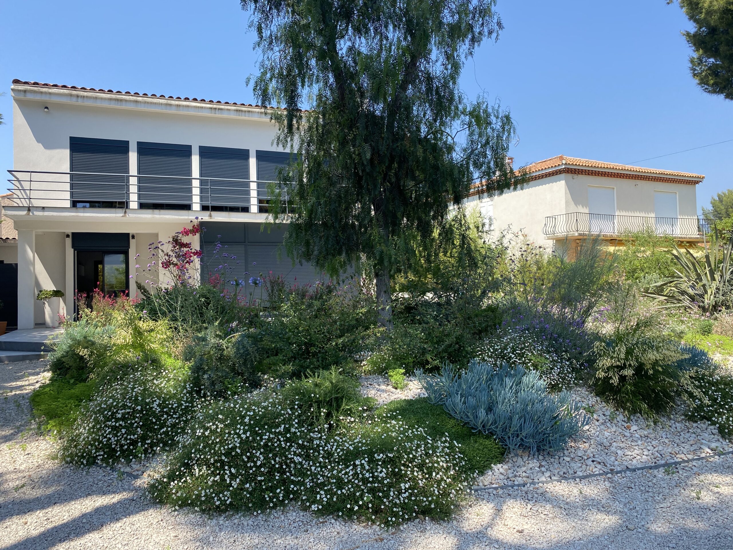 Pensé pour un spectacle floral permanent, ce jardin bleu évolue toute l’année. L’hiver, le printemps et l’été s’enchaînent avec des floraisons successives : les érigéron, giroflées, gauras et lagerstroemias s’épanouissent tour à tour, apportant des touches de couleur et de texture variées. Jungle Art veille à ce que chaque jardin soit vivant et évolutif, où les événements naturels se succèdent harmonieusement pour offrir une expérience sensorielle sans cesse renouvelée.