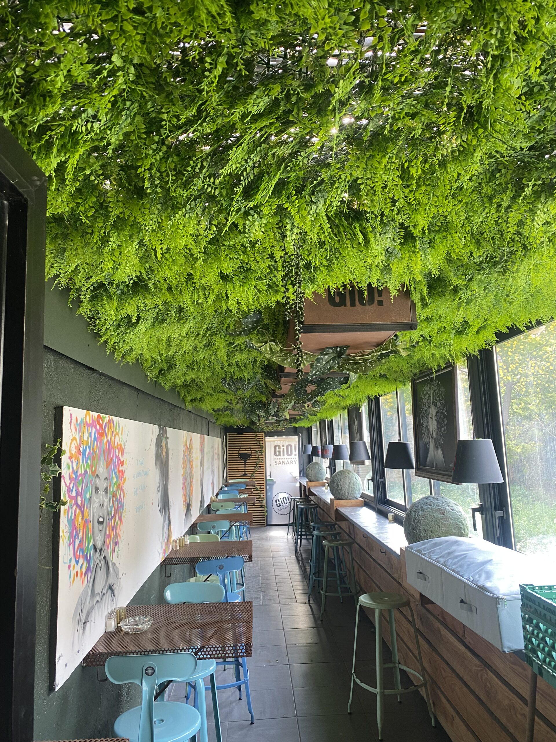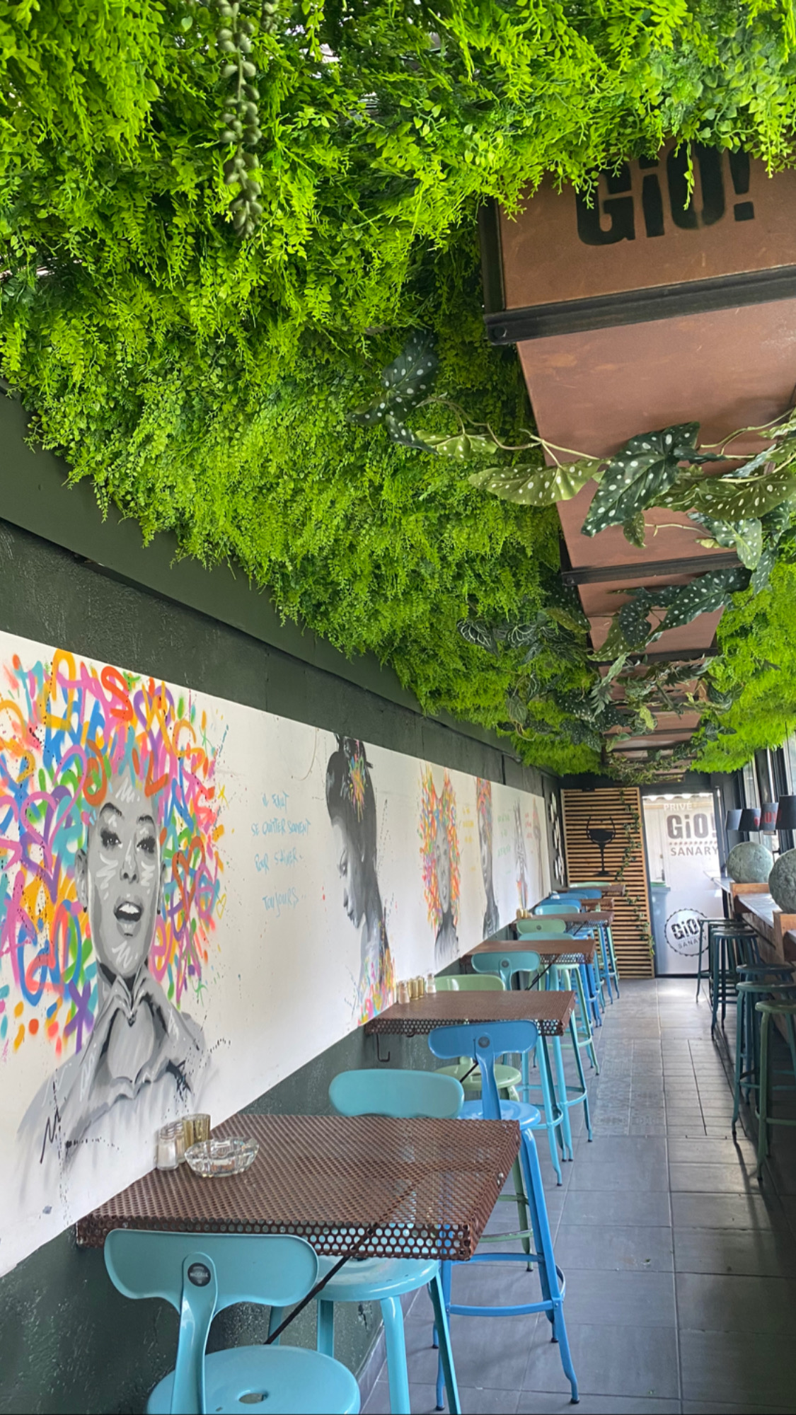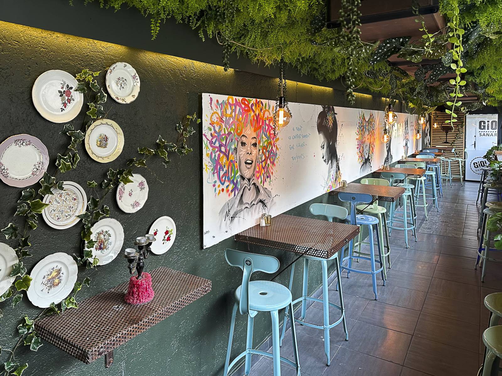 Le restaurant Gio à Sanary-sur-Mer se distingue par une décoration affirmée de street art, sublimée par la touche apaisante de Jungle Art, spécialiste en décoration végétale. Cette alliance surprenante entre l’énergie urbaine du street art et la douceur naturelle des plantes crée une atmosphère unique, propice à la détente et aux échanges.