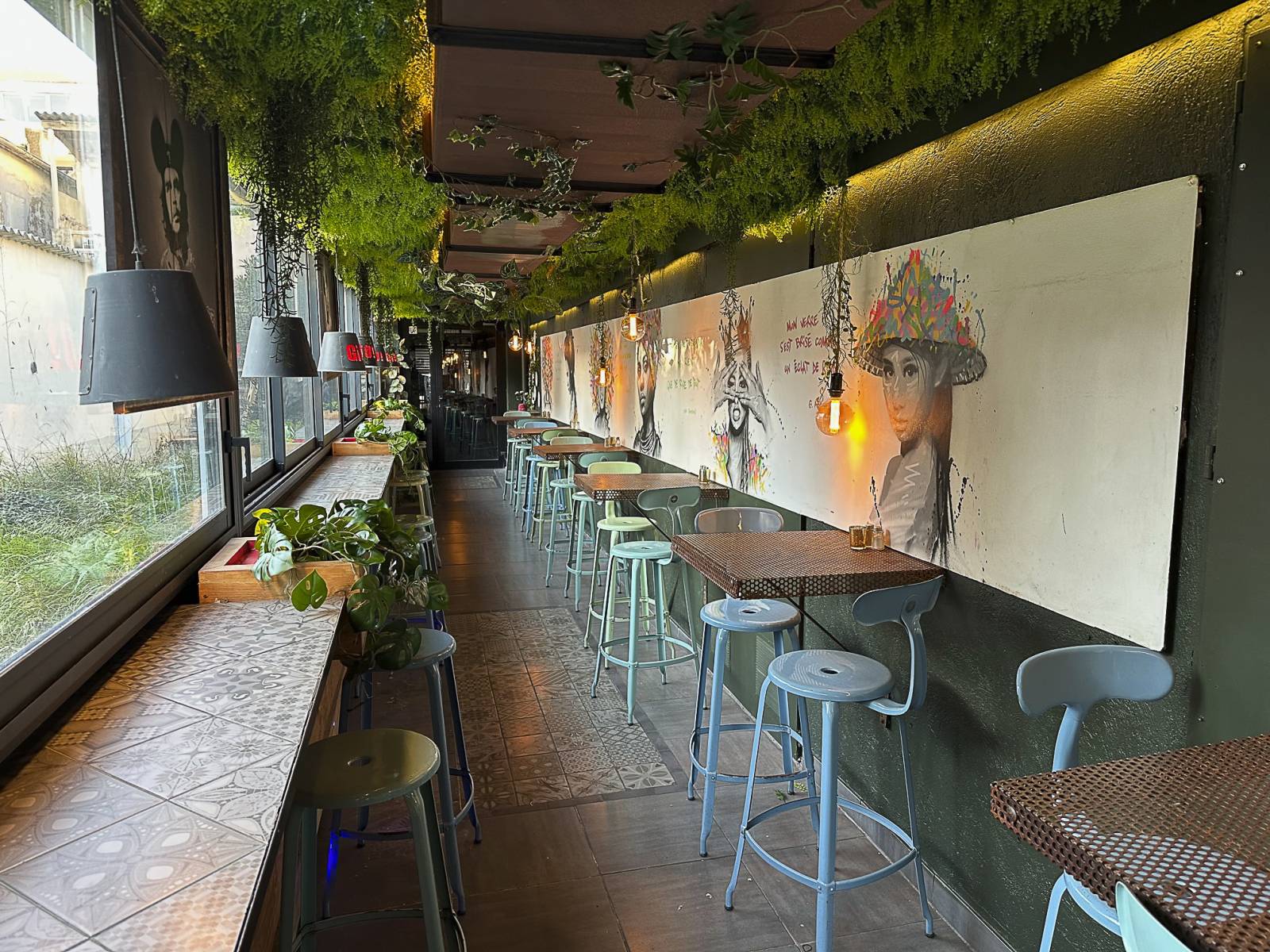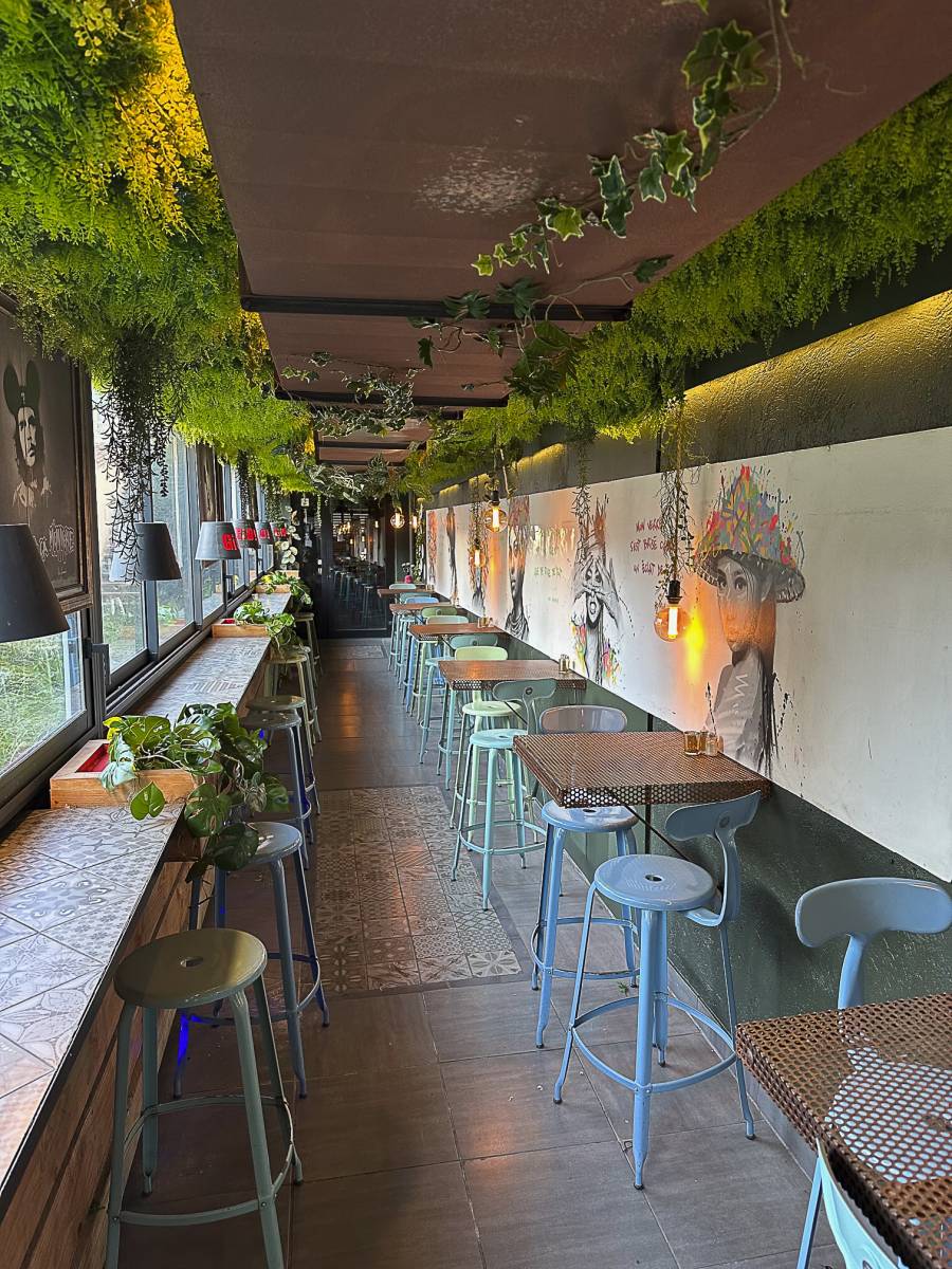 Les plantes suspendues et les coins végétalisés apportent un sentiment de fraîcheur, tout en invitant à un moment de partage et de convivialité. La décoration végétale transforme cet espace en un lieu de rencontre où l’énergie artistique se mêle à l’apaisement de la nature.