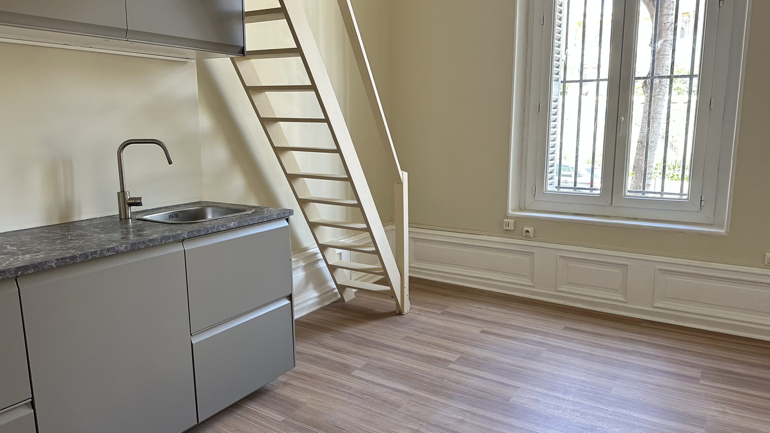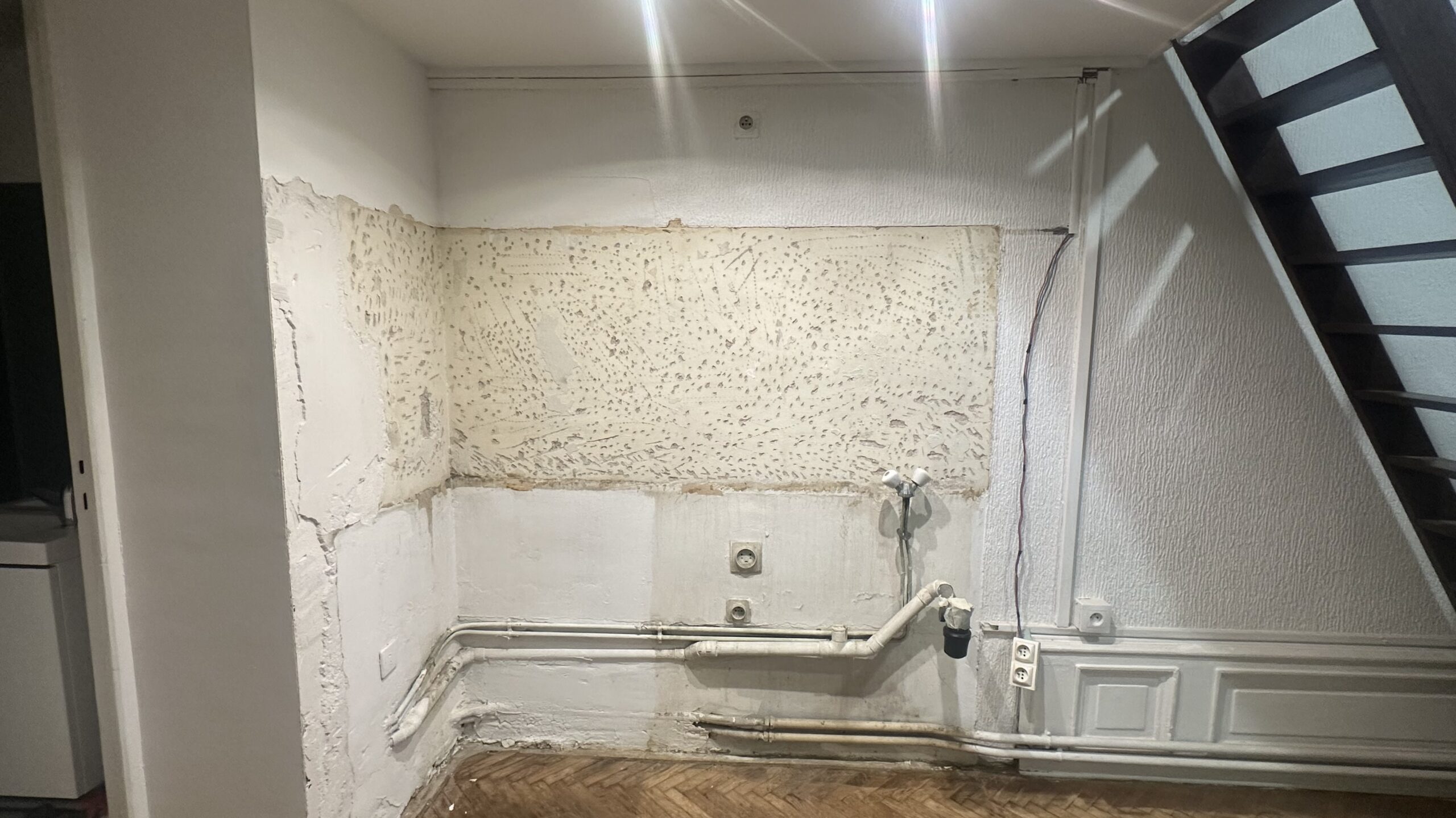 Rénovation élégante d’un studio haussmannien avec parquet en chêne et mezzanine La rénovation de studio dans un immeuble haussmannien exige un savoir-faire précis afin de sublimer le charme de l’ancien tout en offrant un confort moderne. Ce studio, doté d’une haute hauteur sous plafond et d’un magnifique parquet en chêne massif, se trouvait dans un état général très dégradé. Après avoir soigneusement retiré les tapisseries vieillissantes et entrepris la restauration du parquet, un travail minutieux a été mené pour redonner toute sa noblesse au lieu. L’espace a été pensé autour d’harmonies de teintes douces, créant une atmosphère chaleureuse et raffinée. La mezzanine a été repeinte afin de transformer cet espace en une chambre intime et confortable, idéale pour préserver la tranquillité. Le choix du mobilier en matériaux nobles et confortables renforce le sentiment de bien-être et d’élégance. Chaque détail de cette restauration de studio haussmannien reflète un esprit chic et contemporain, respectueux du caractère architectural d’origine.