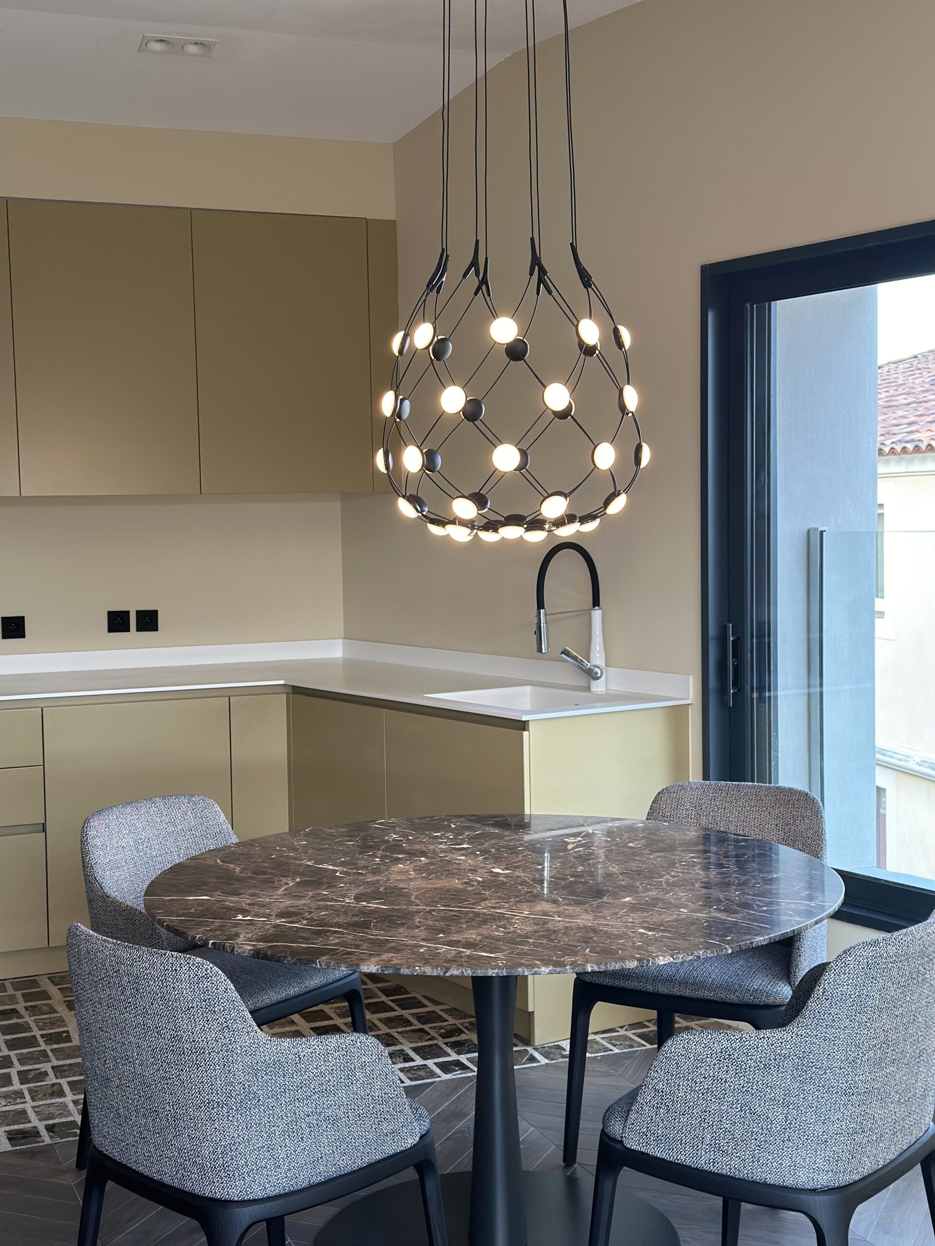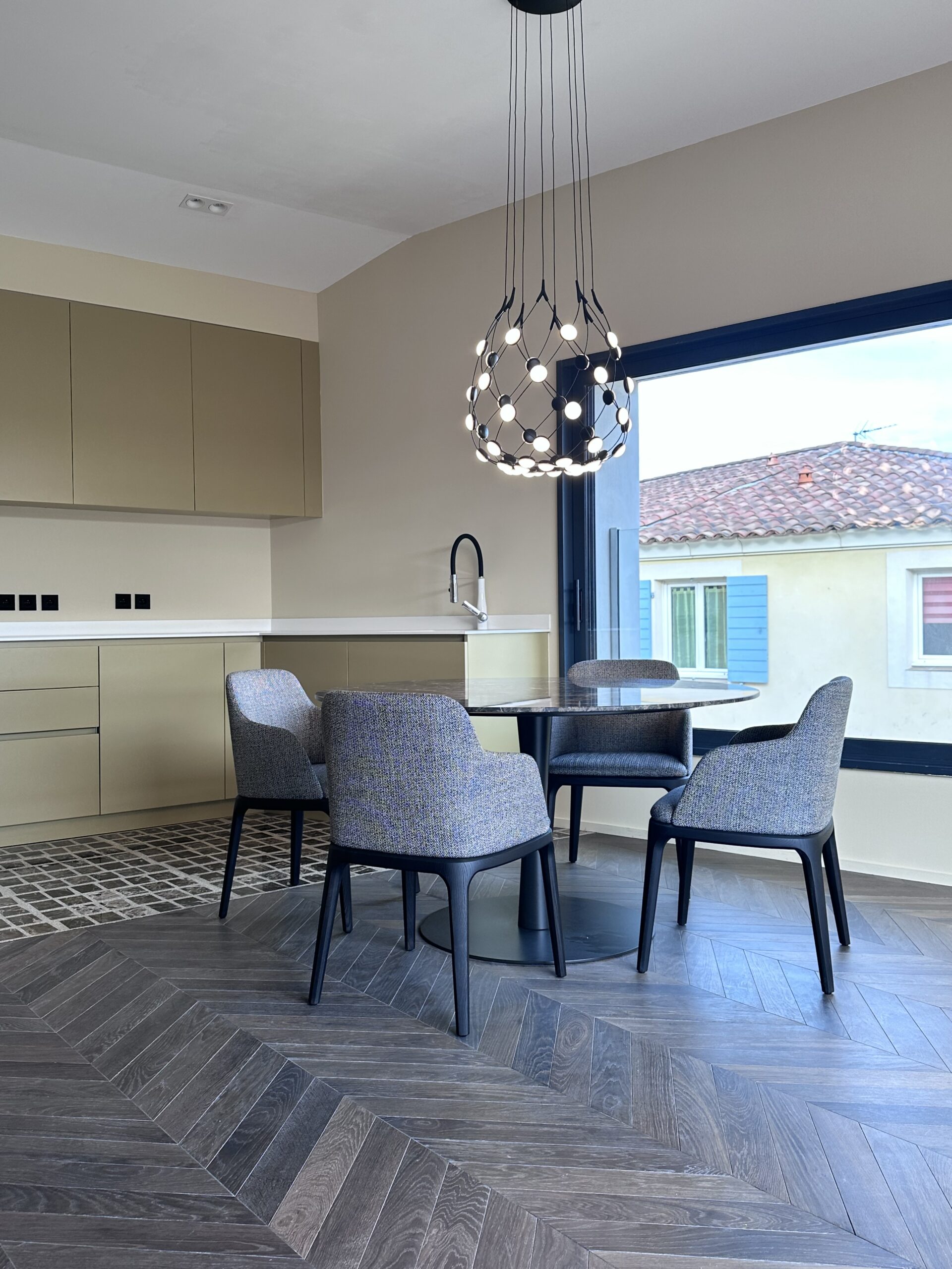 Au cœur de Cassis, nous avons eu le plaisir de concevoir et de décorer dans sa totalité un appartement neuf de 120 m², composé de cinq pièces, vendu en VEFA. Ce projet de décoration intérieure a été pensé dans un esprit à la fois intemporel et raffiné, mêlant chaleur, élégance et originalité. Les coloris choisis s’inspirent d’un camaïeu de bruns et de beiges, allant du marron café au châtaigne, jusqu’à des nuances plus douces de beige crème. Ces teintes créent une atmosphère enveloppante et harmonieuse, sublimée par un parquet en pointe de Hongrie teinte mocca, qui apporte une touche de caractère à l’ensemble. Chaque détail a été soigneusement sélectionné pour refléter un art de vivre contemporain et élégant. Les luminaires de belle facture, issus de marques de haute gamme, viennent parfaire les volumes et sublimer la lumière naturelle. Cet appartement à Cassis incarne une décoration sur mesure, où l’équilibre entre chaleur, modernité et raffinement s’exprime à travers des matériaux nobles et des finitions soignées.